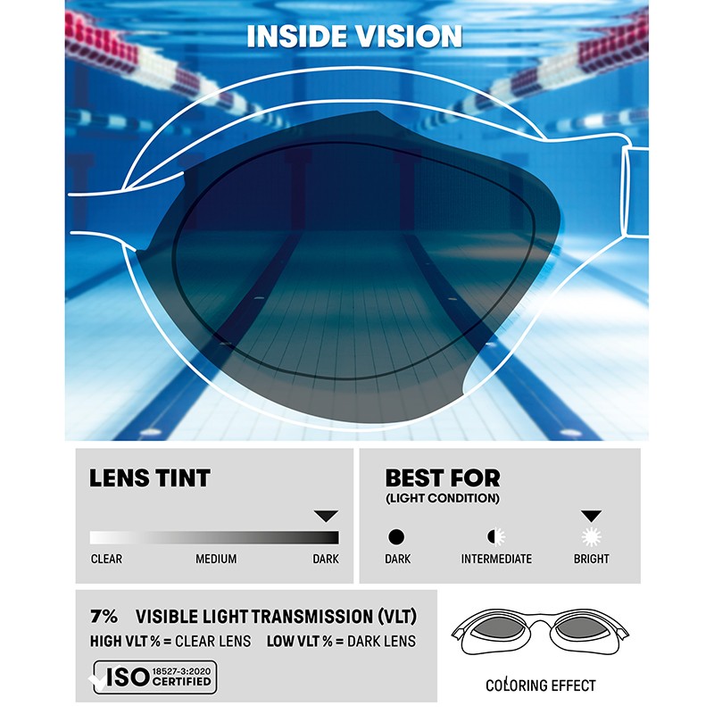 The dual strap is easily adjustable at the back of the head and guarantees a secure fit, even on starts and turns. The goggles are equipped with anti-fog coating, UV protection and are PVC-free.