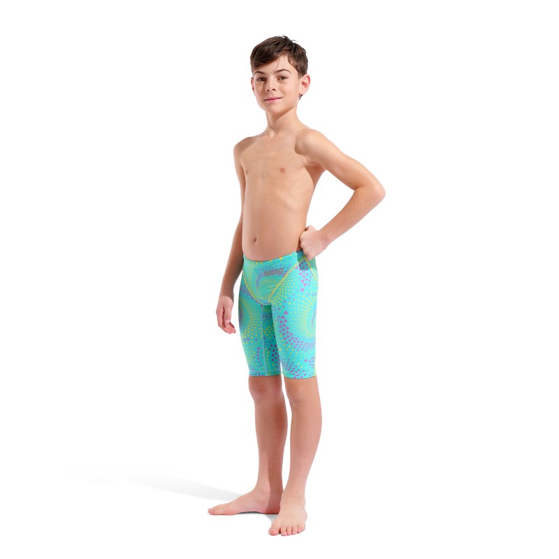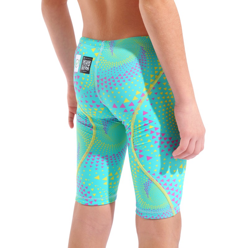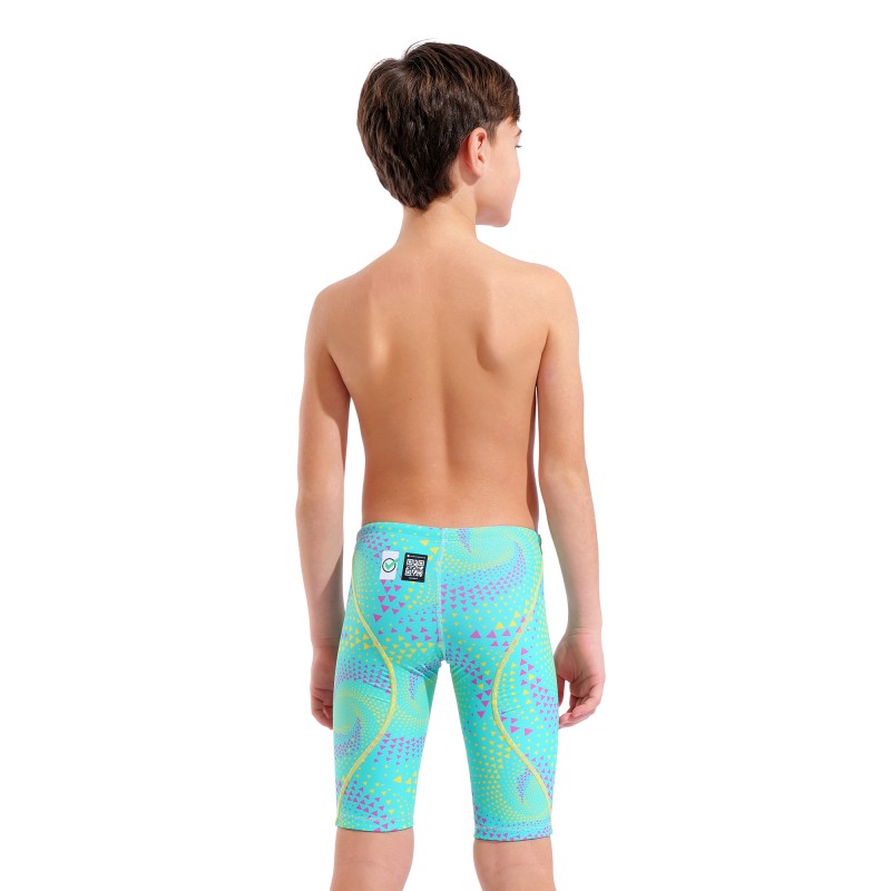 Turn heads in this eye-catching racing suit that channels the energy of the sea with a bold, hypnotic design. Feel the difference in the updated boys' racing jammer arena Fireflow Seaglass Limited Edition Powerskin ST Next.