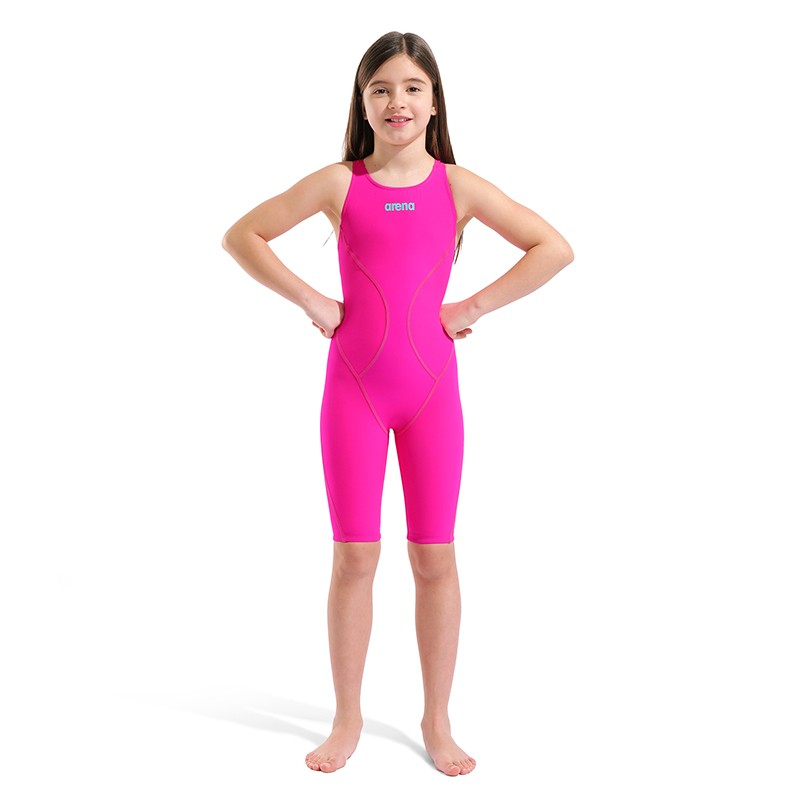 Equipped like the Pros! Race with confidence and make your mark in this striking pink racing suit! The arena Shocking Pink & Water Limited Edition Powerskin Impulso Kneeskin Swim Racing Suit for girls offers moderate compression for great muscle support, an improved hydrodynamic position in the water and reduced drag.