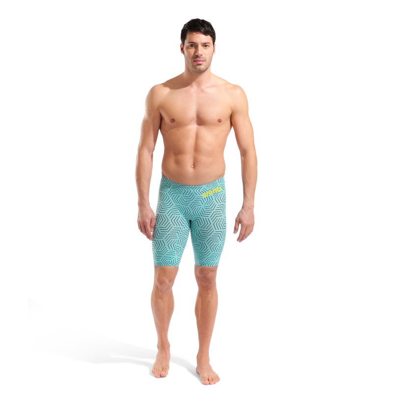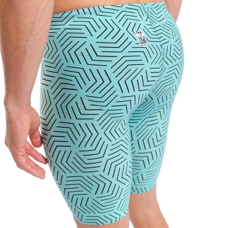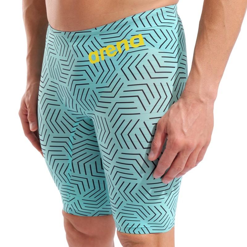 The most lightweight of the Carbon series, arena's Water Maze Limited Edition Powerskin Carbon Air2 jammer provides hydrodynamic support to male competitive swimmers. It is designed with an eye-catching turquoise Water Maze. The technical profile of the suit comprises a single piece of fabric, which works to reduce pressure on the hip area while providing a second-skin feeling of comfort.