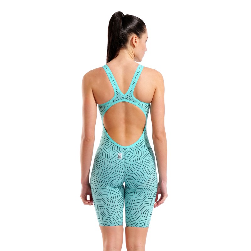 The most lightweight of the Carbon series, arena's Water Maze Limited Edition Powerskin Carbon Air2 provides hydrodynamic support to female competitive swimmers. Designed with an eye-catching turquoise water maze.